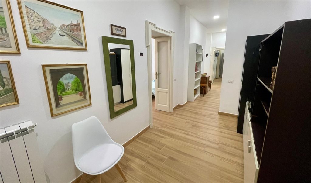 L’appartamento si trova al secondo piano con ascensore ed è composto da: ingresso, ampia zona giorno con cucina e soggiorno, tre camere (due doppie e una singola), due bagni (di cui uno finestrato), due balconi, ripostiglio/lavanderia con lavatrice. Arredato e con riscaldamento autonomo.