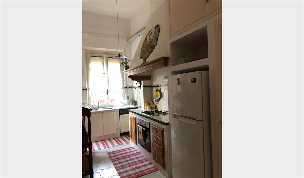 L'appartamento ha una bella cucina , una sala da pranzo, tre camere, due bagni, una bella terrazza piena di verde ,un grande ingresso.