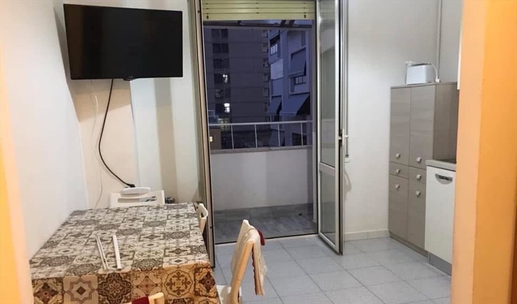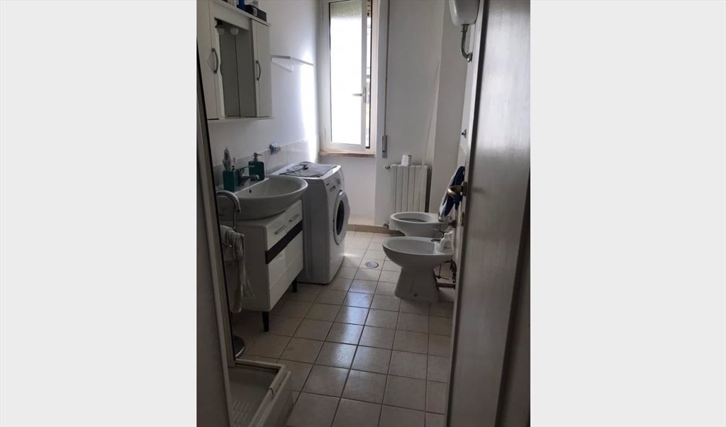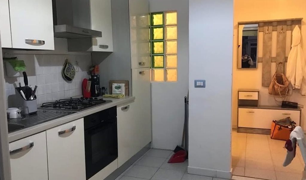 L’appartamento è costituito all’ingresso da una struttura con appendiabiti e scarpiera e una libreria; la cucina è con condizionatore e si affaccia su un terrazzino con copertura superiore per pioggia. L’affaccio è sul cortile interno del palazzo, posizione molto silenziosa e tranquilla; proseguendo dall’ingresso si percorre un corridoio con lucernario e ricco di spazi d’appoggio grazie ad un armadio a muro. Bagno finestrato con doccia, lavandino con mobiletto, water, bidet, lavatrice e varie mensole. Queste zone sono in condivisione.