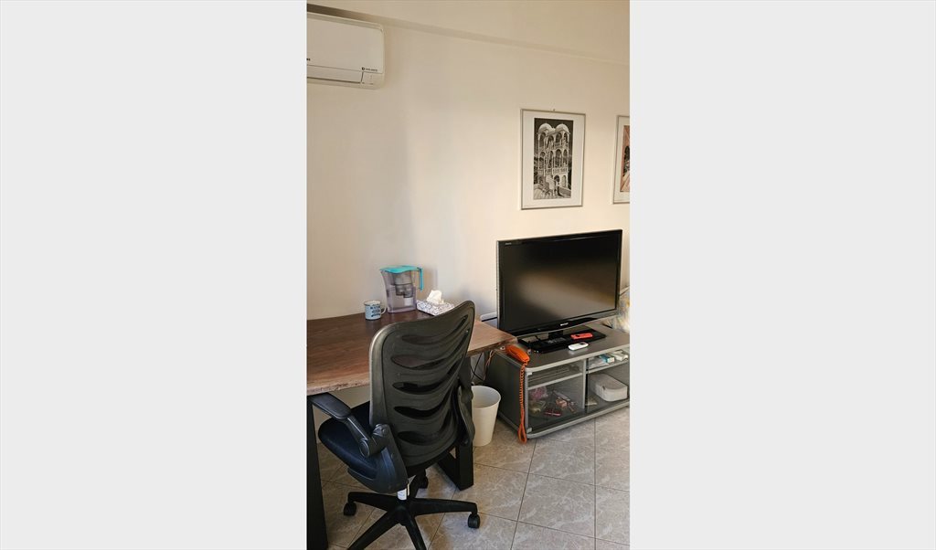 Modern furnished room (120x200 bed) with desk, bookcase, wardrobe, sofa, a large TV, a very good INTERNET connection and Air Conditioning.