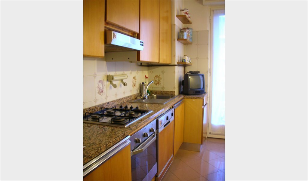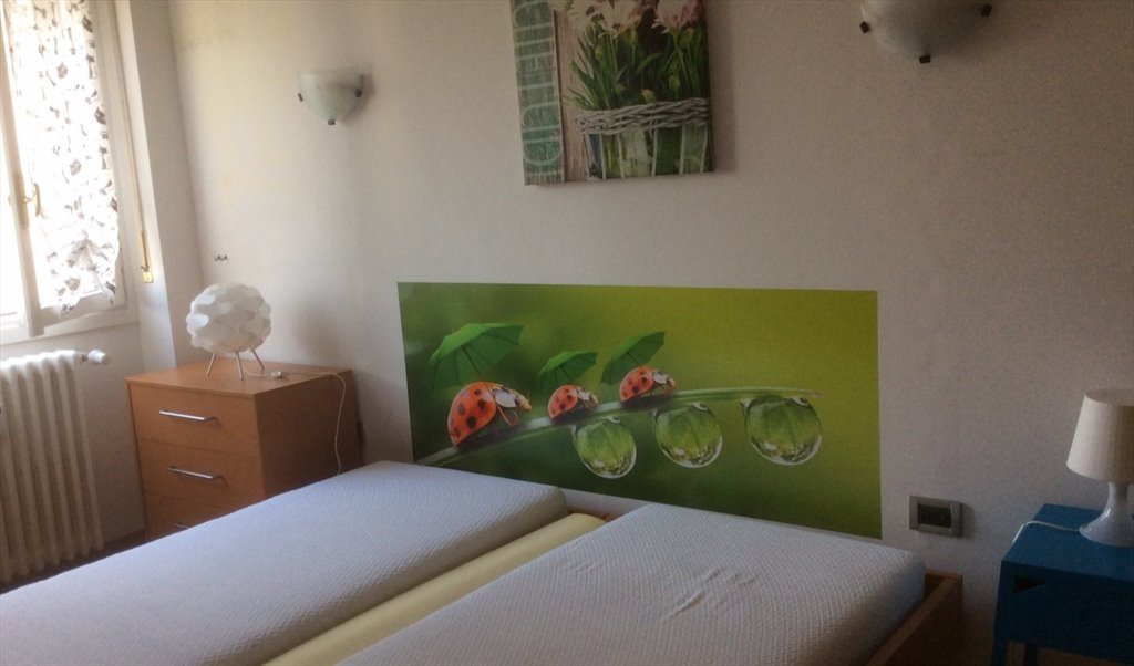 Stanza di 20 mq arredata e collocata in appartamento di 92 mq con altre due stanze oltre a cucina abitabile e bagno. L'appartamento è collocato in condominio signorile con giardino, portineria e parcheggio biciclette, al quinto piano con ascensore.