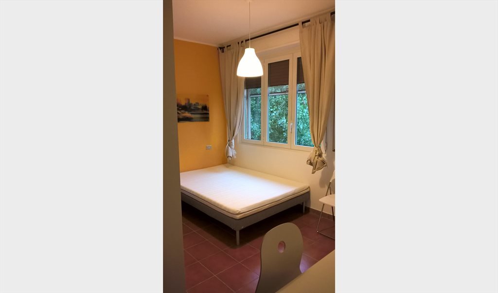 La camera è arredata con mobili IKEA e contiene un letto francese (140x200cm), un armadio a 3 ante, una scrivania/sedia e una libreria.